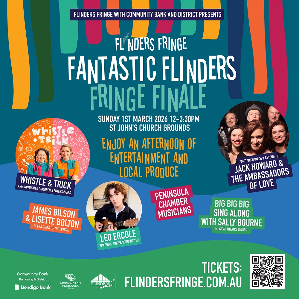 Join us for the Fantastic Flinders Fringe Finale, a relaxed Sunday afternoon of music, performance, and community celebration.